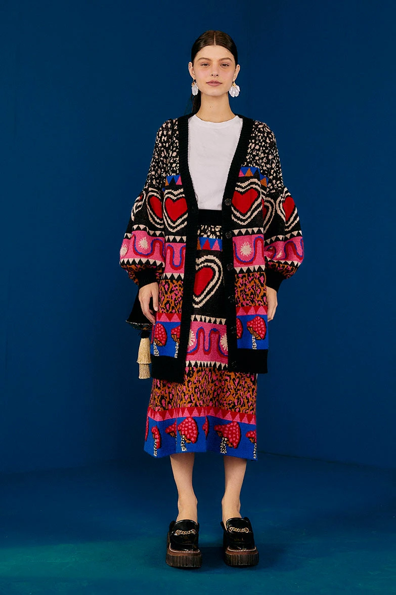 A print-lovers vibe to brighten your wardrobe up. The Graphic Elements Ainika Cardigan comes to embrace all your standout looks, from dresses to pants to skirts (have you seen the Graphic Elements Ainika Sweater Skirt? A WOW match!). You can also bring your warm shoes to complete this cozy mood, baby!