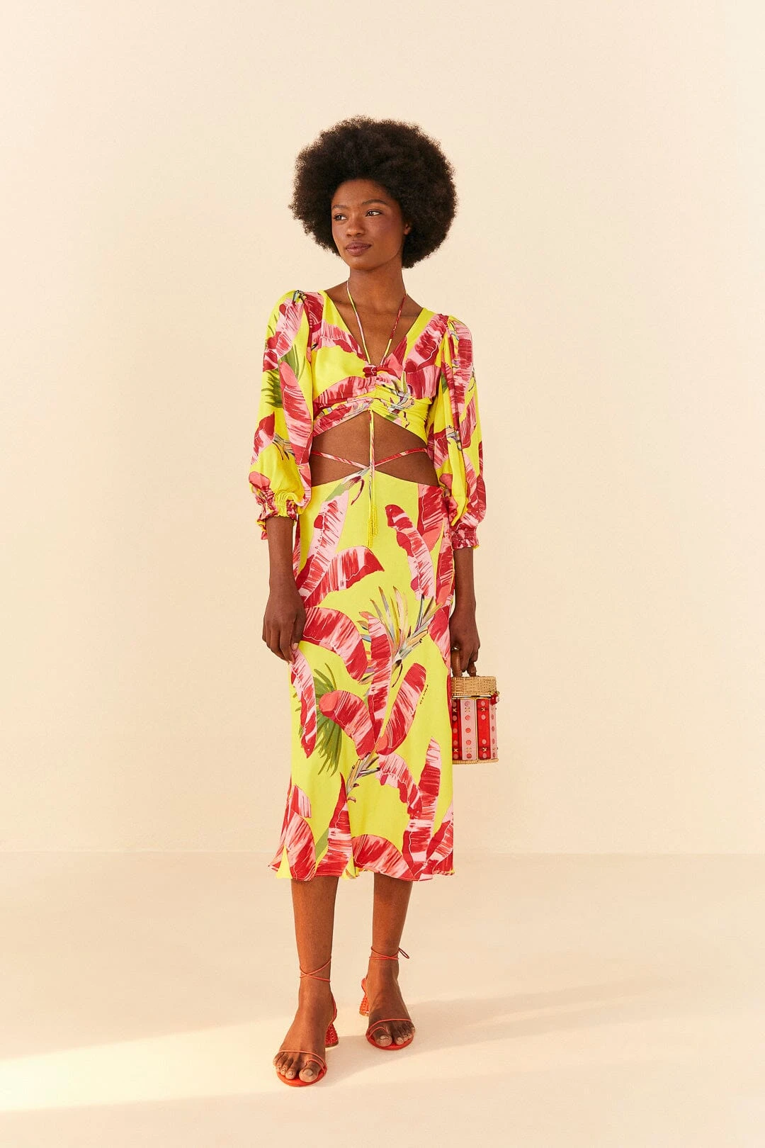 A tropical statement of what making a bold impression means to you. The Lime Sweet Jungle Lenzing™ Ecovero™ Viscose Crop Top is here in the most fancy-yet-cool silhouette! It features a halter neckline with beaded tassels and smocked detailing to level up whatever look (and plans!) you have in mind. This top matches your fresh bottoms (have you seen the Lime Sweet Jungle Lenzing™ Ecovero™ Viscose Strap Skirt? A total must-have buddy!). Your cool shoes and accessories are also welcome!