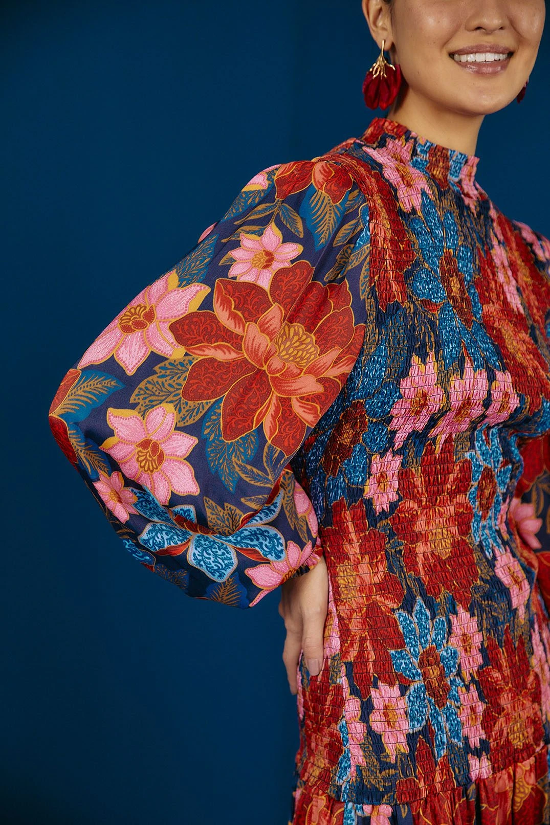 Bold florals for Fall? So groundbreaking with the Navy Garden Lenzing™ Ecovero™ Viscose Midi Dress! It features a cozy-yet-chic fit with ties, long sleeves, and a fresh length to keep showing some legs and bold FARM Rio Shoes. Your new dress also matches your cool accessories and whatever plans you have in mind, from work meetings to having fun with friends.