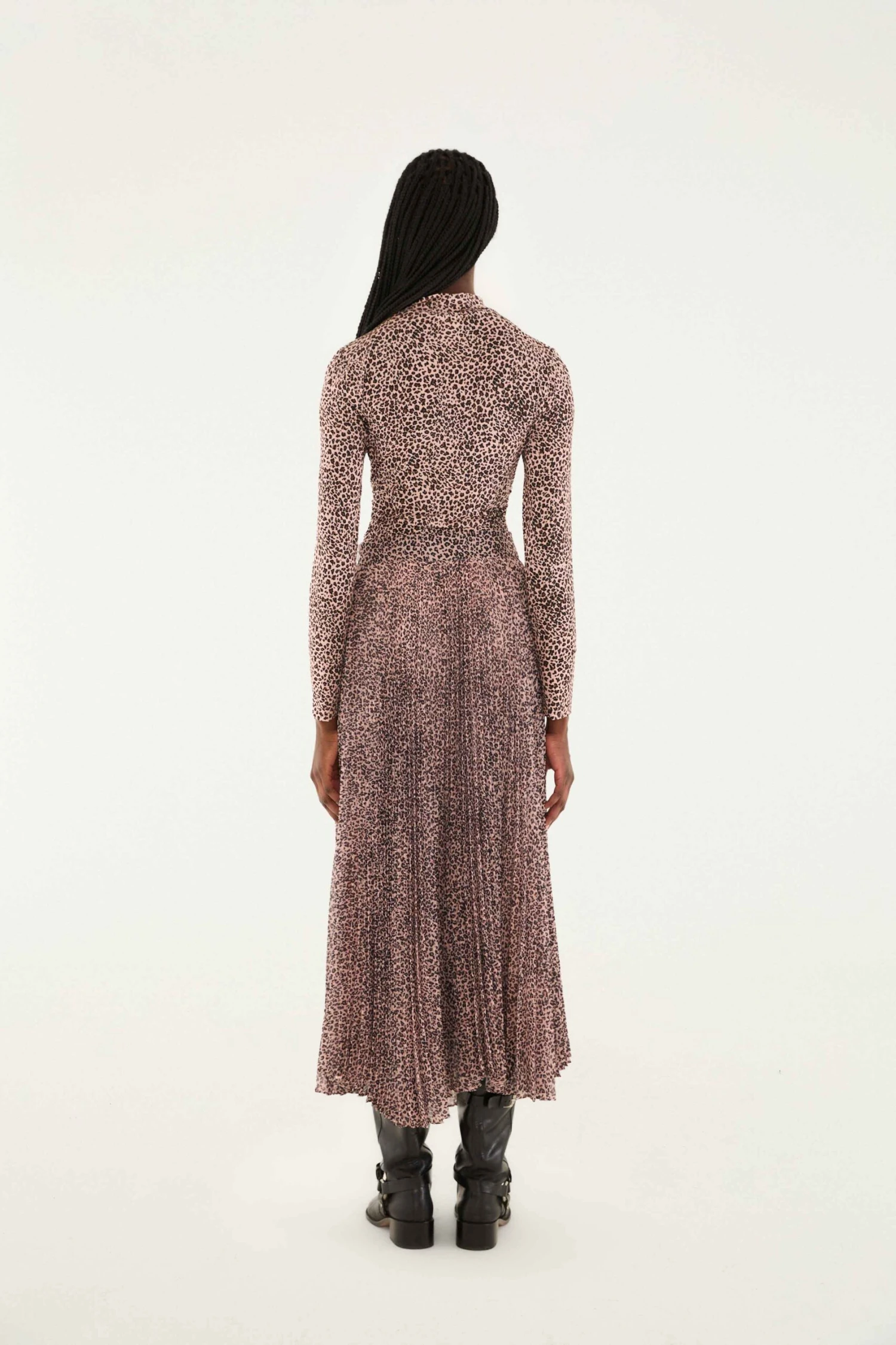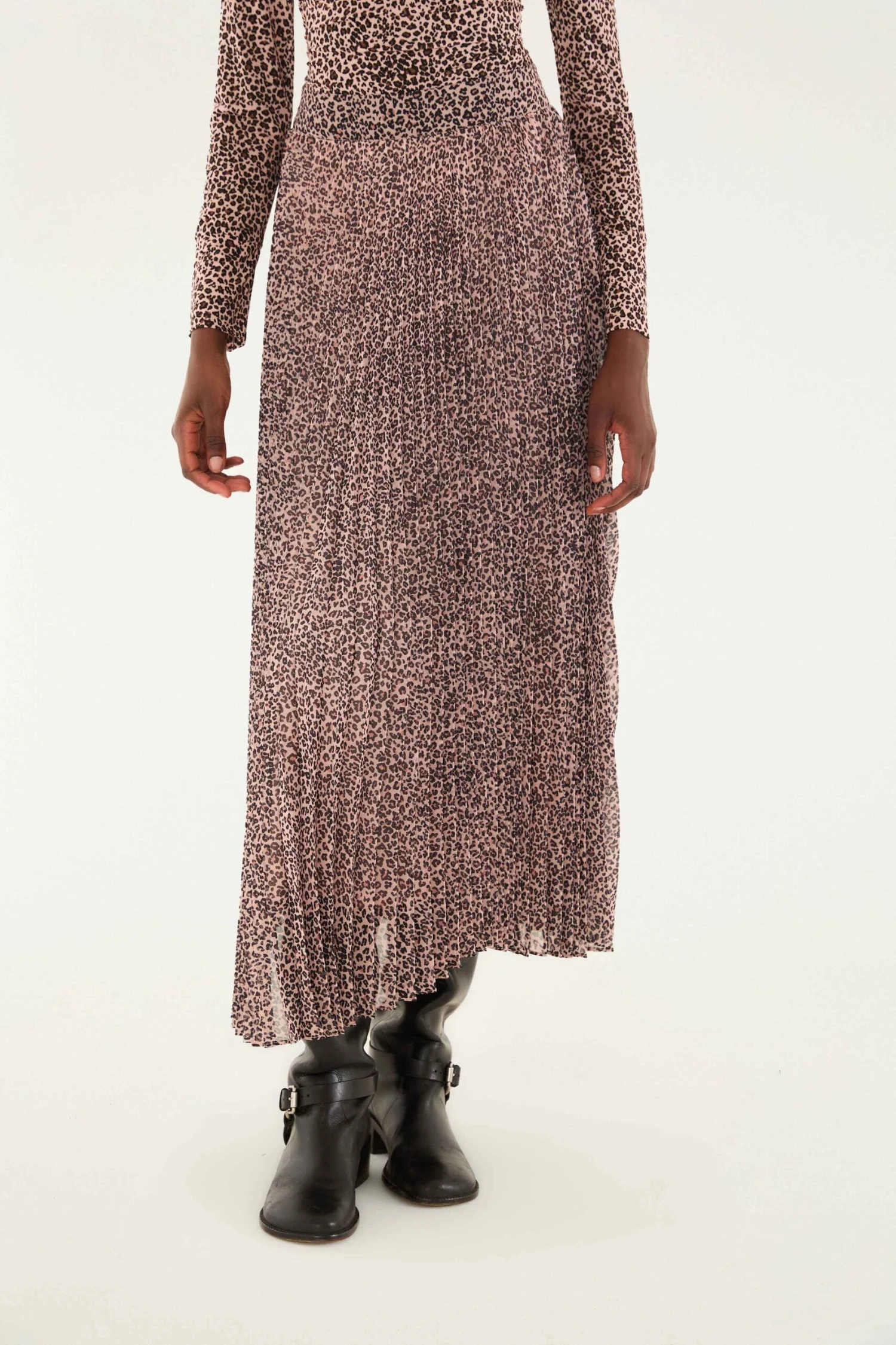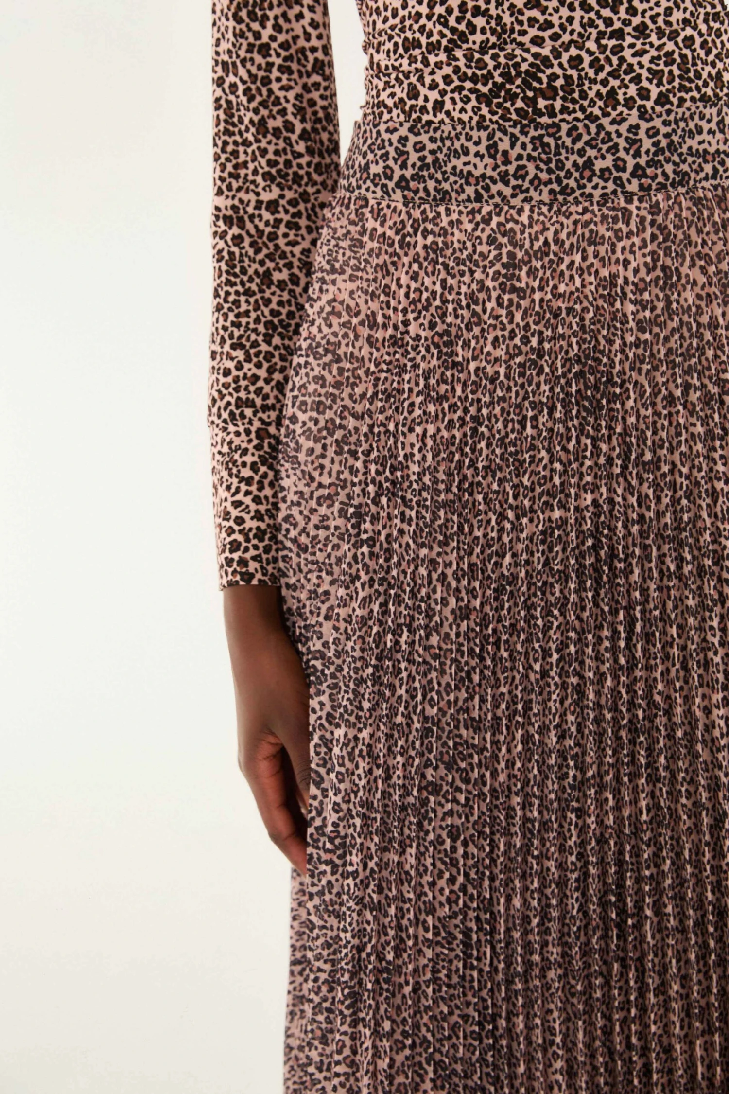Step into effortless charm with the Pink Baby Leopard Pleated Maxi Skirt by FARM Rio. This flowy skirt features a soft blush-pink base adorned with a playful baby leopard print, evoking a whimsical wildness. Its finely pleated fabric creates graceful movement, while the high waist defines a flattering silhouette. A unique blend of bold pattern and delicate texture invites warmth and spirited confidence into your wardrobe.