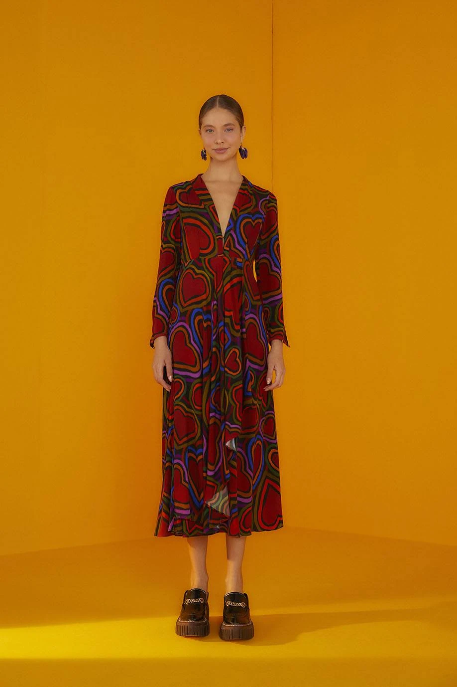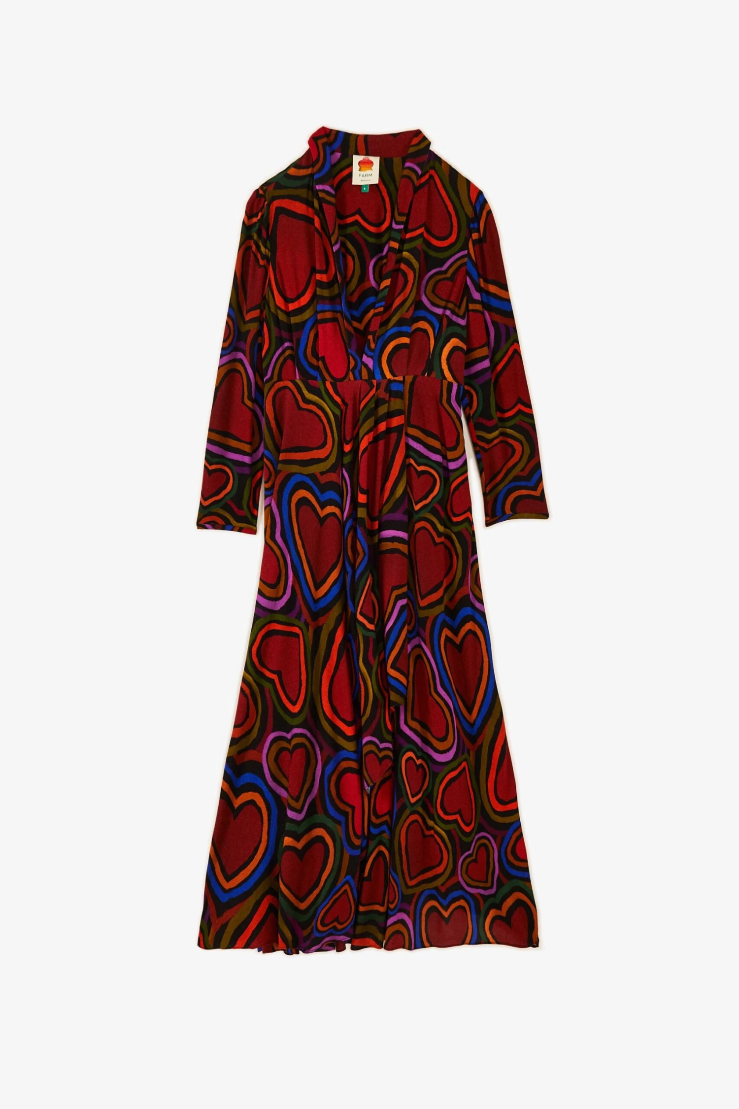 A fave to fall head over heels for, whatever the weather <3 The Rainbow Wild Hearts Maxi Dress will be your companion, from fun days with friends to work meetings (and every plan in between!). It features a cozy silhouette with a traffic-stopping neckline, long sleeves, and a flowy skirt to follow your confident moves. If you wanna stand out from the basic crowd, invite warm layers and FARM Rio Shoes to complete your Fall-ready look and go spread love everywhere!