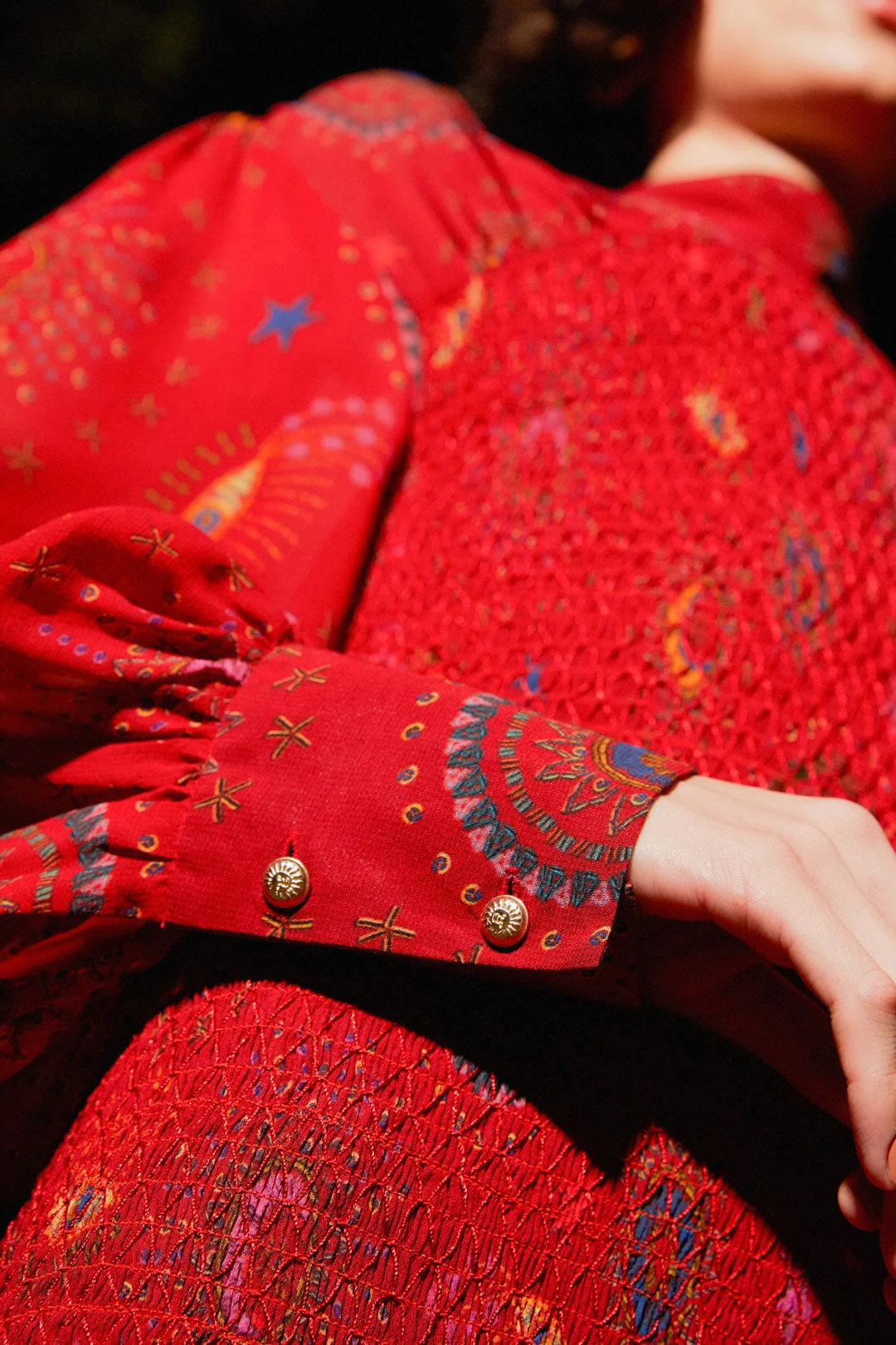 - Smocked bodice with pleated detailing