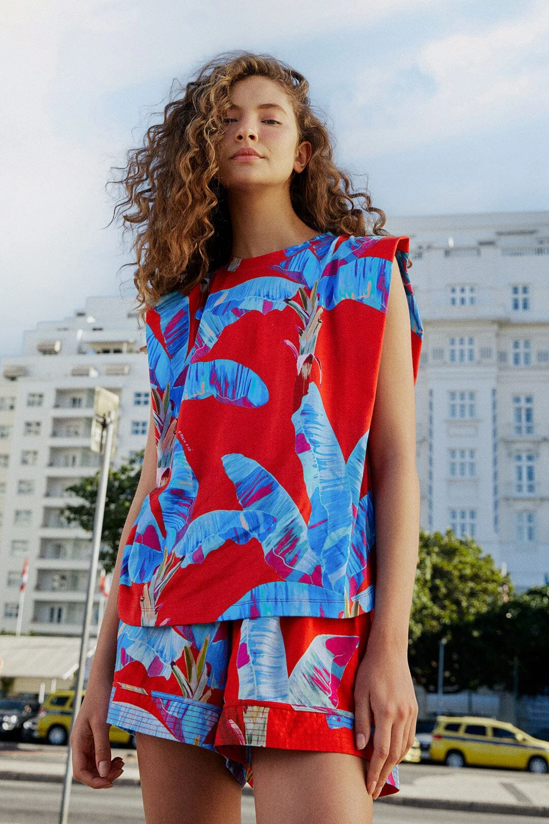 Get into a nature-inspired state of mind to prepare for sunny days ahead. The Red Sweet Jungle Organic Cotton T-Shirt is (literally!) a refresh for your wardrobe with its effortless silhouette. It matches your cool bottoms, from skirts to shorts to pants (the Red Sweet Jungle Organic Cotton Shorts awaits!). So how about inviting some bold shoes to complete your solar look along with artisanal accessories?