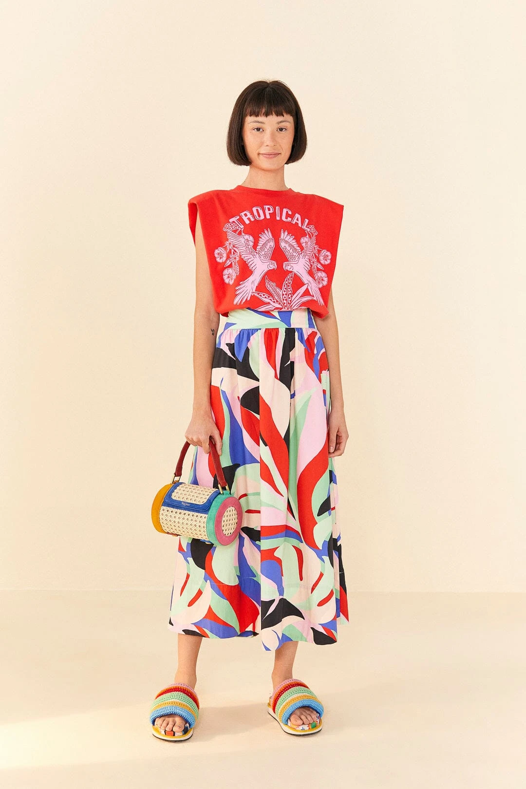 Sometimes you can stay in your comfort zone! The Red Tropical Organic Cotton T-Shirt is the new definition of a cozy fave: both the shape and the nature-inspired print will walk you through joyful plans, and the padded shoulders are a WOW detail. Invite all your bottoms to have fun, from pants to shorts to overalls (and every fresh style in between!).
