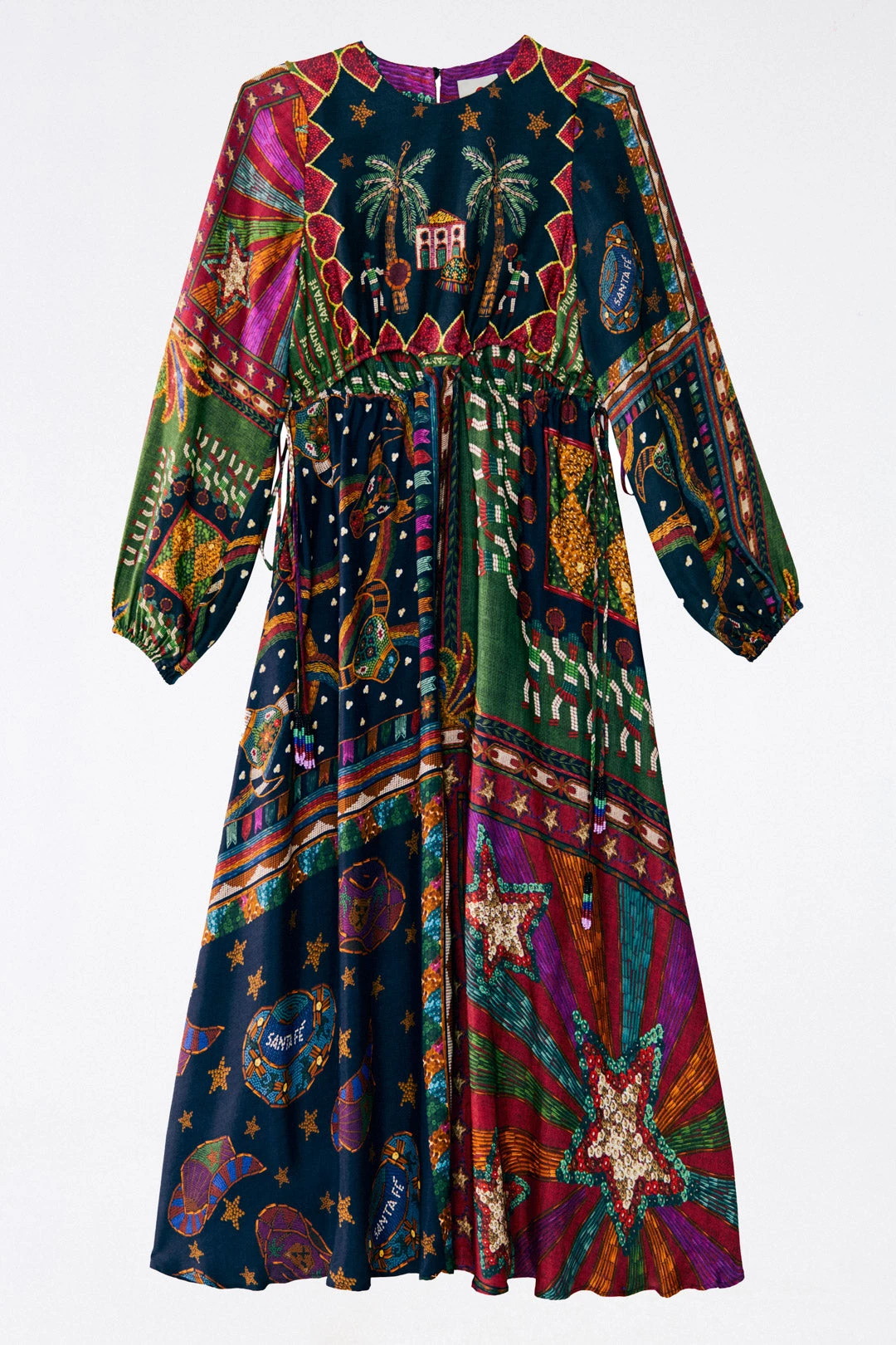 - Adjustable waistline with ties and beaded tassels