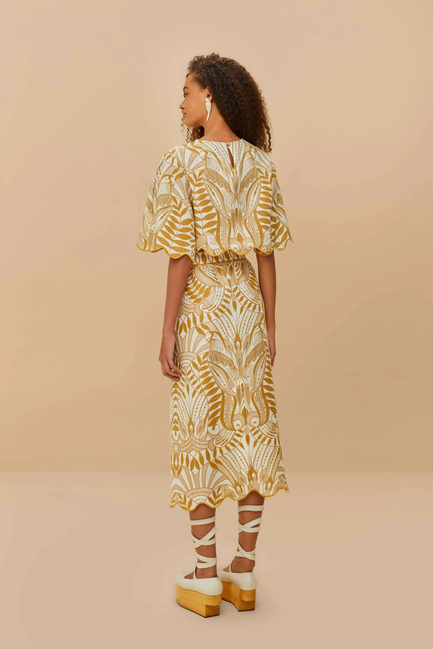 Embrace timeless elegance with our Off-White Lace Nature Euroflax™ Premium Linen Midi Skirt. Crafted from responsible materials, it features a graceful midi length adorned with intricate lace patterns in warm mustard and white hues. The flattering silhouette and rich textures evoke a sense of playful sophistication, perfect for any occasion. This piece invites warmth and joy into your wardrobe, ensuring you’ll stand out with its unique charm.