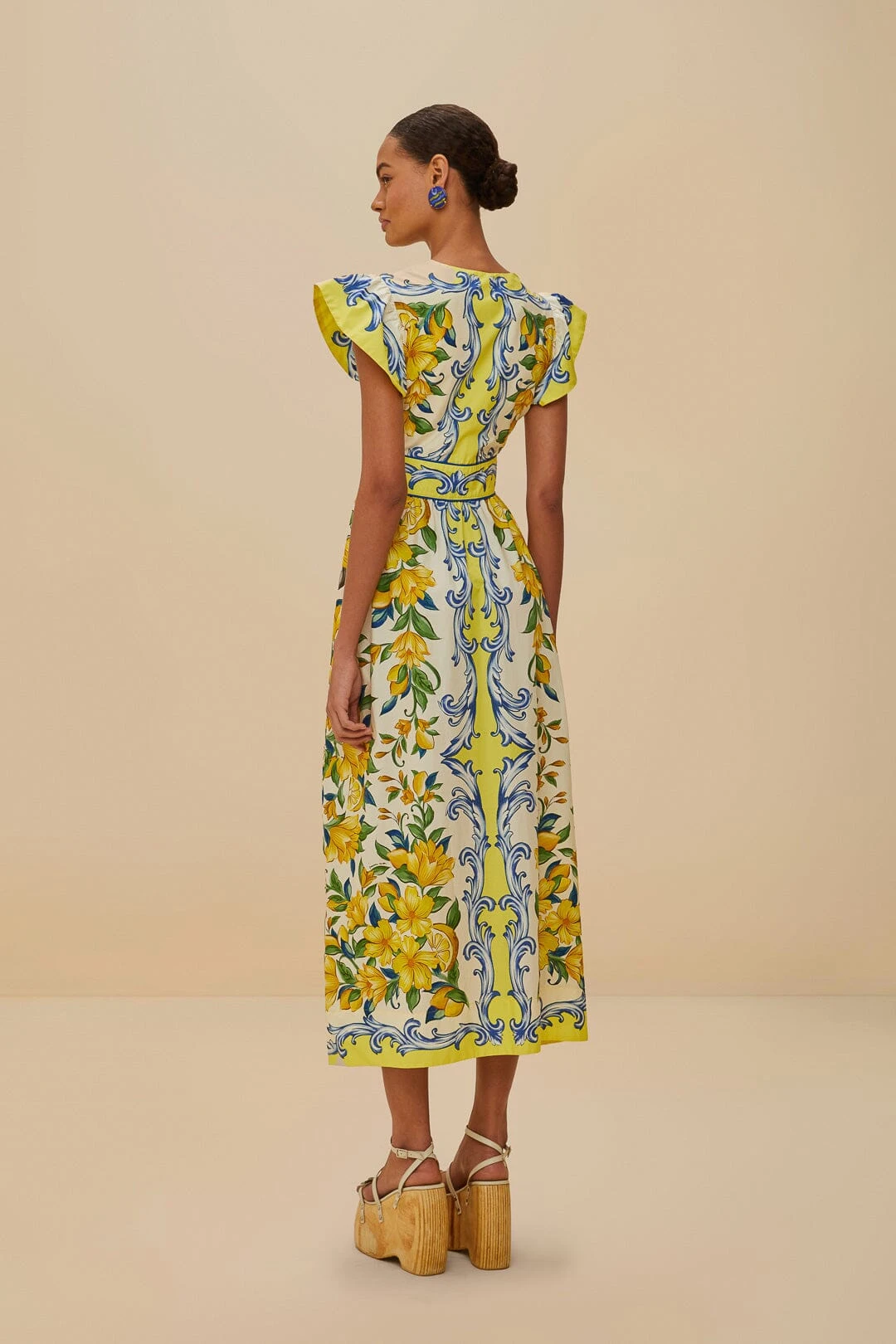 Embrace an enchanting blend of vivid charm and playful elegance with the Off-White Sicily Scarf Organic Cotton Maxi Dress by FARM Rio. Crafted with responsible materials, its lively floral pattern blooms against a backdrop of soft hues, highlighted by a flattering V neckline. The dress features butterfly sleeves and a cinched waist, creating a breezy, yet sophisticated silhouette that effortlessly captures the spirit of tropical artistry.