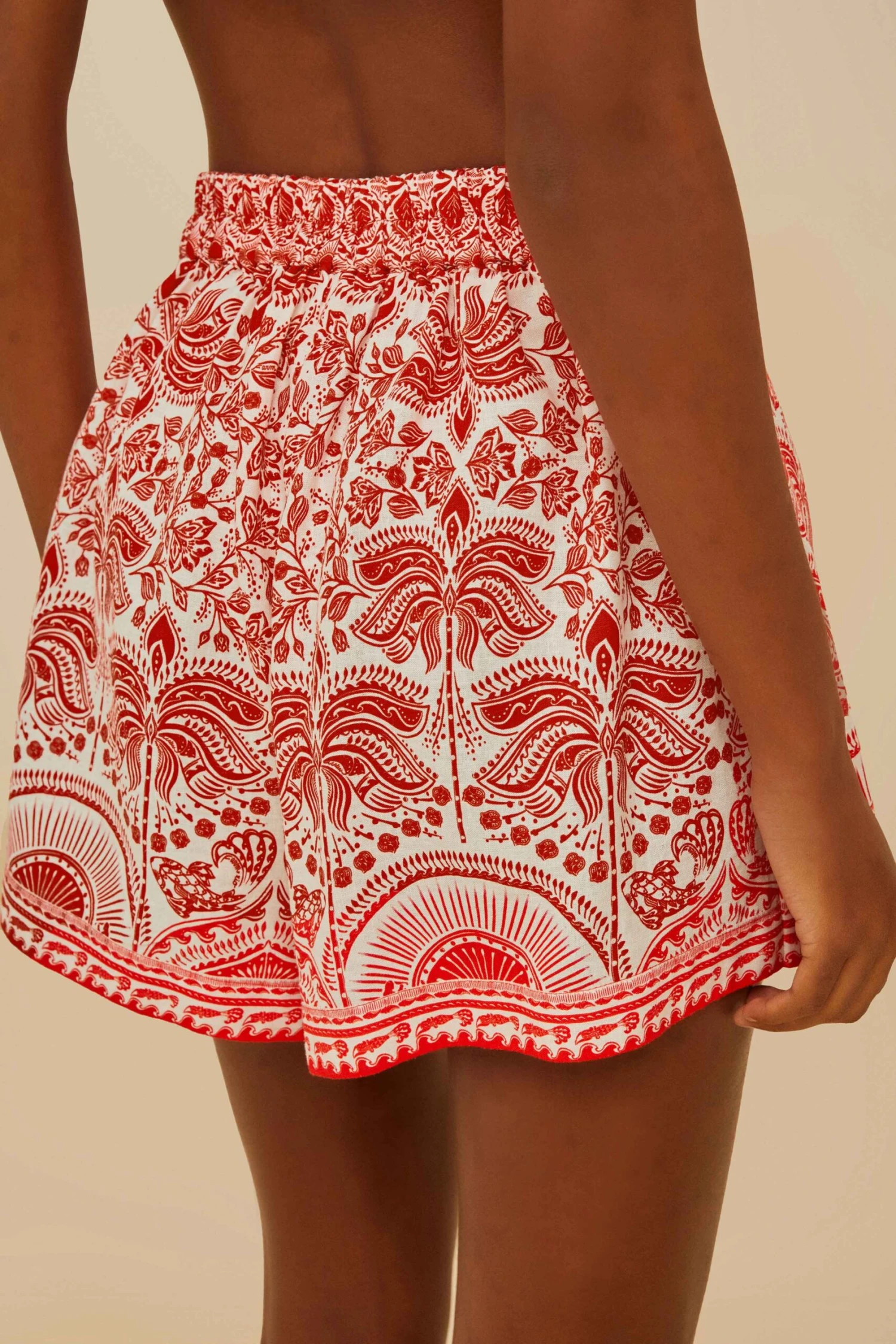 The Red River Ride LENZING™ ECOVERO™ Euroflax™ Shorts by FARM Rio embrace a vibrant red floral pattern, radiating charm and freshness. Crafted from responsible materials, these shorts feature a relaxed fit with a flattering wrap style and playful tie detail. The intricate print adds a touch of bohemian elegance, making them ideal for sunny adventures or a casual day out, bringing warmth and joy to your wardrobe.