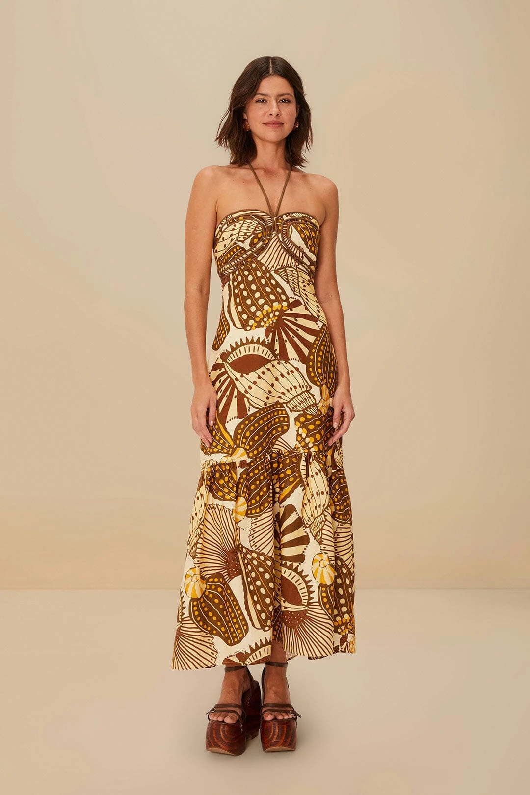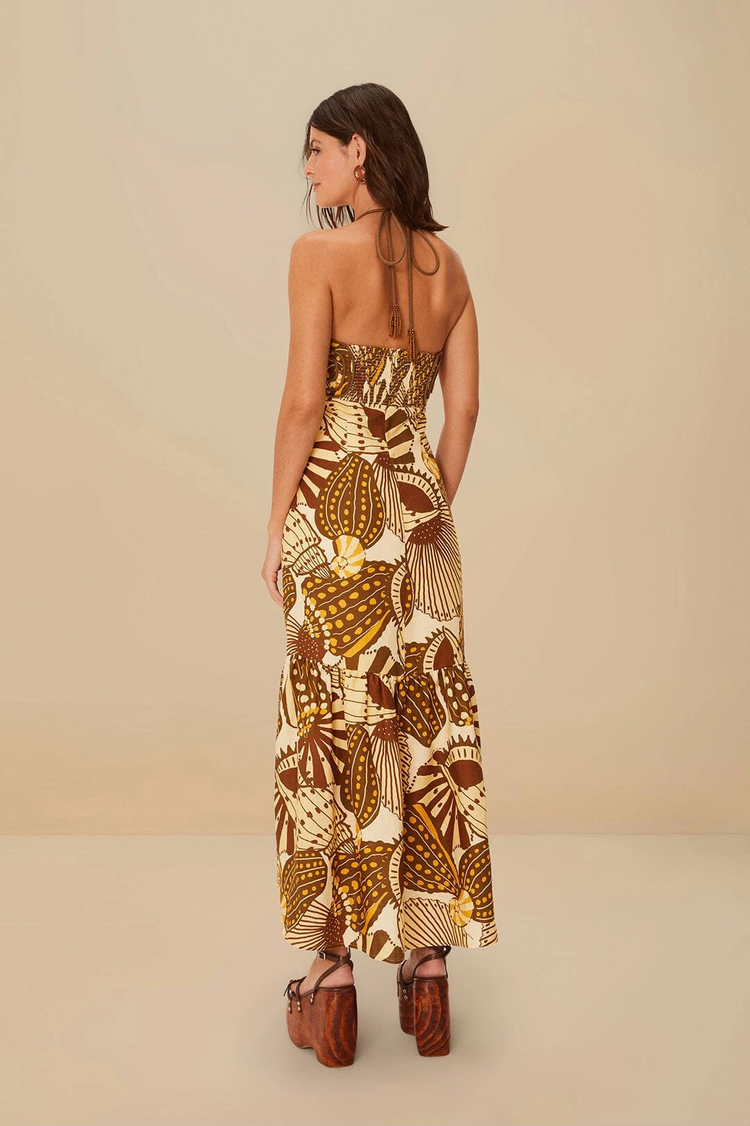 Embrace the art of effortless elegance with the sand shell mix euroflax™ premium linen maxi dress by FARM Rio. Bursting with vibrant hues and an enchanting pattern that dances across every sway, this dress features a chic halter neckline adding an air of sophistication. Crafted from responsible linen, its flowing silhouette offers both comfort and style. Exuding irresistible charm, this maxi dress is a celebration of joy and playful elegance in your wardrobe.